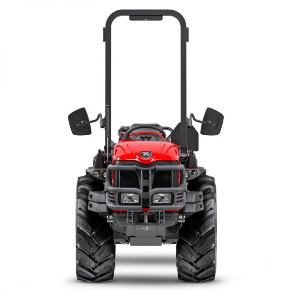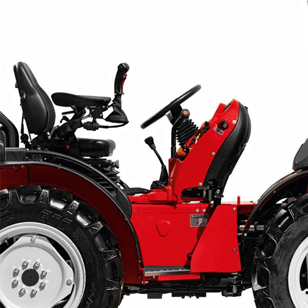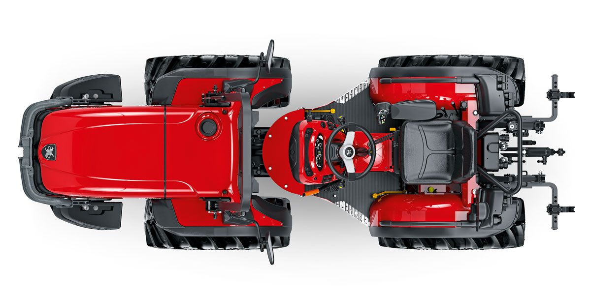 Load Sensing hydraulika s prietokom vyše 50 l/min a zdvihová kapacita 2 200 kg umožňujú použitie aj náročnejšieho náradia, vrátane nástrojov na strihanie, odlistenie alebo sejbu zeleného hnojenia. Stabilitu zaručuje nízke ťažisko a podvozok ACTIO™, zatiaľ čo olejom chladené brzdy so Superbrake systémom poskytujú maximálnu bezpečnosť. Voliteľná klimatizovaná kabína REDCab so 4 stĺpikmi ponúka pohodlie a skvelý výhľad.